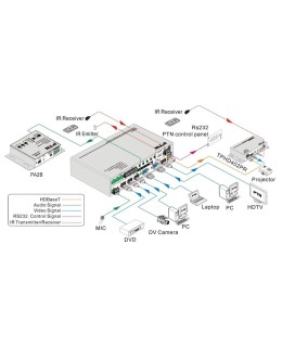 De SC51T is een zeer handige scaler/switcher met HDMI, VGA, audio, microfoon, IR en RS232. De kracht van deze kleine switcher zit in de HDBaseT uitgang. Tesamen met de TPUH411R heeft u een degelijke oplossing welke te implementeren is in boardrooms, leslokalen, vergadercentra, etc.